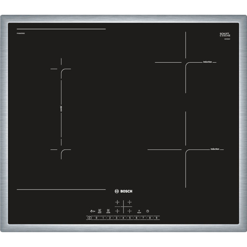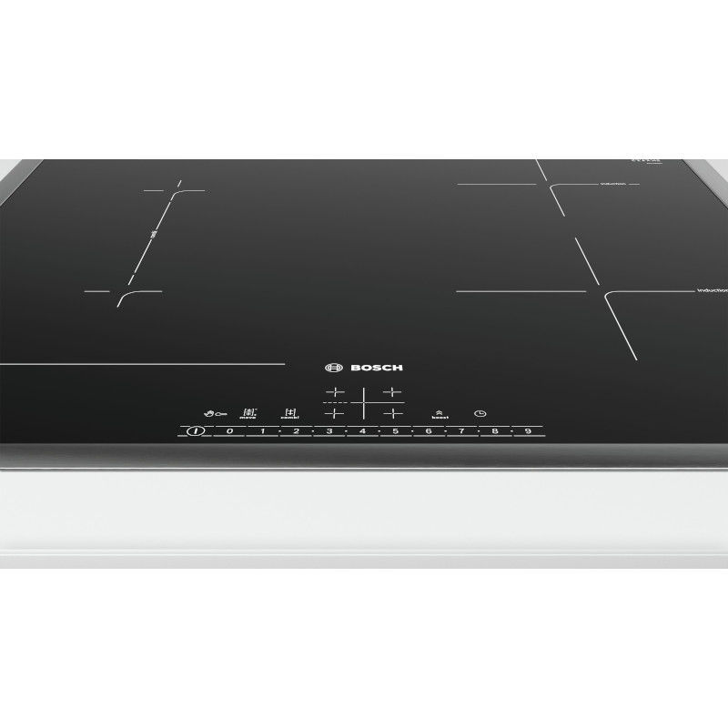 Bosch indukcijska ploča za kuhanje, širina: 60 cm, crna boja. 4 indukcijska polja za kuhanje, podešavanje snage: 17 stupnjeva. PowerBoost: do 50% više snage za brže zagrijavanje. DirectSelect: izravan, jednostavan odabir željene zone kuhanja, snage i dodatnih funkcija. Funkcija QuickStart: odmah i bez odgode možete započeti i odabrati željenu razinu kuhanja za svoj lonac. ReStart: ako nešto prekipi, ploča za kuhanje će se automatski isključiti i pohraniti posljednju odabranu postavku.