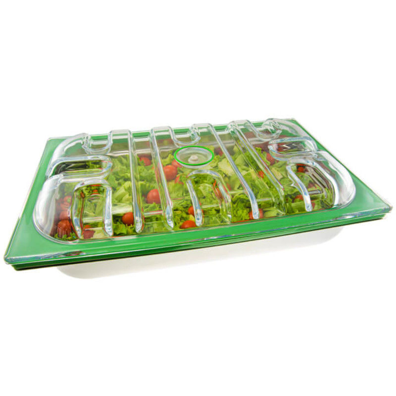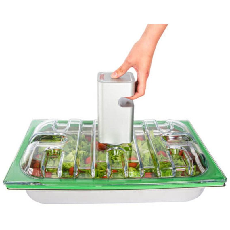 Najveći GN poklopac je primjeren za upotrebu na GN posudi veličine 1/1. Namirnice pohranite u posudu i zatvorite s poklopcem. Za brzo zatvaranje preporučamo gastro vakuumsku pumpu BVP300 koja će u nekoliko trenutaka izvuči zrak i kreirati podtlak.