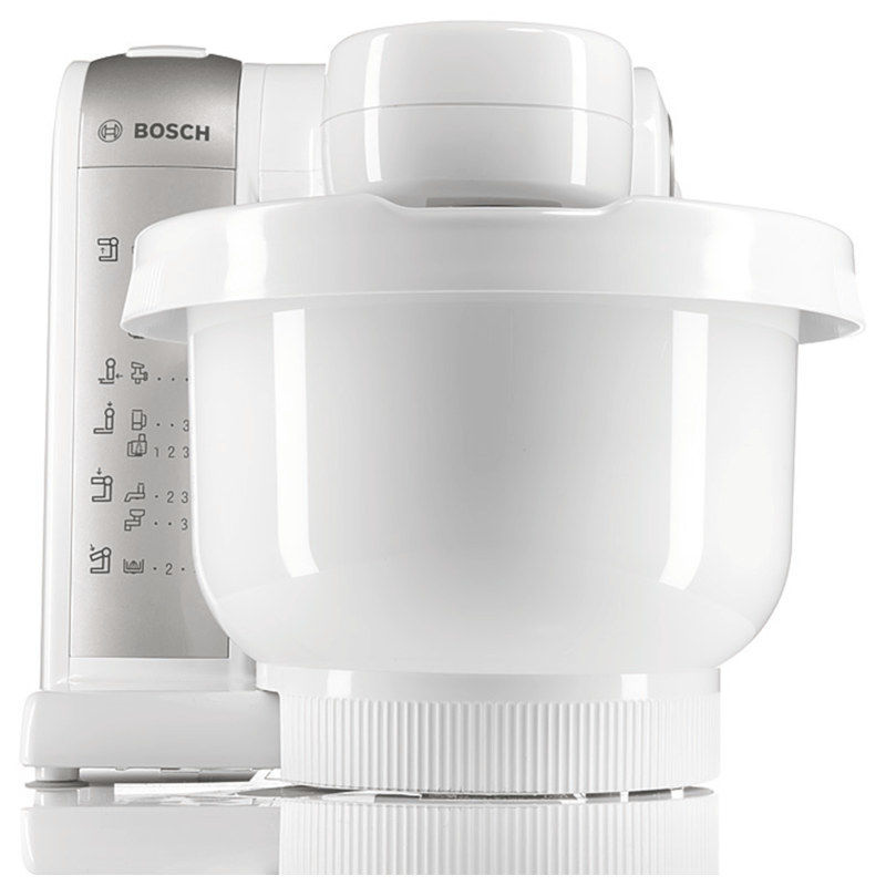 Dodatna plastična posuda za miješanje. Za fleksibilnu i istovremenu pripremu dvaju tijesta, posebice dizanog tijesta. Jednostavna i praktična za rukovanje zahvaljujući prikladnim ručkama. Jednostavna za čišćenje u perilici posuđa. Posuda je kompatibilna sa Bosch MUM4 kuhinjskim uređajima.