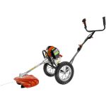 Benzinski motorni trimer na kotačima, vrlo je učinkovit i snažan te je pogodan za uređenje svih vrsta travnatih površina, kako ravnih tako i brdovitih. Bez obzira da li se radi o površinama s višom travom ili zapuštenom travnjaku. To je zapravo spoj trimera i kosilice. Obzirom da je sva težina trimera oslonjena na kotače fizički napor prilikom rada je značajno smanjen. Kotači su velikog promjera tako da trimer sa lakoćom prelazi preko svih neravnina na travnjaku. Izbalansirana konstrukcija olakšava guranje i okretanje trimera. Glava flaksa visoke je kvalitete s niti od 3mm koja se odreže na odgovarajuću veličinu i jednostavno ugura u glavu. Stop prekidač i ručica gasa nalazi se na glavnoj ručki. Nakon rada stroj je moguće sklopiti tako da zauzima malo mjesta prilikom skladištenja. Paljenje trimera vrši se s poteznim startnim mehanizmom. Trimer je opremljen velikim štitnikom koji osigurava siguran rad i u velikoj mjeri smanjuje opasnost da neko strano tijelo dođe u dodir s korisnikom.