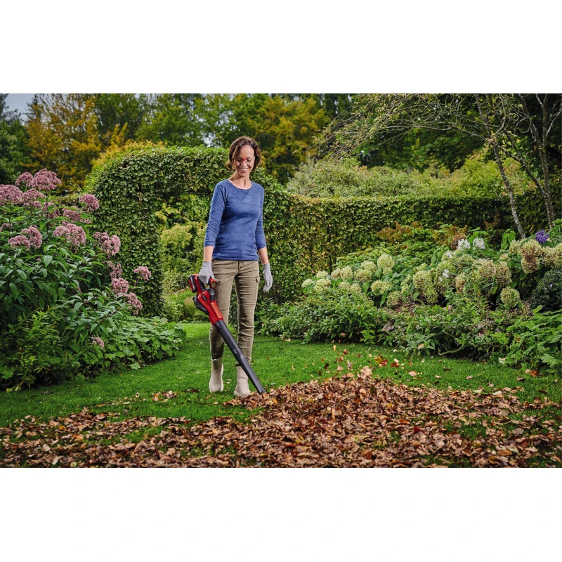 Uz Einhell akumulatorski univerzalni puhač GE-UB 18/250 Li E-Solo lako je održavati red u kući i vrtu u svakom kutu, zahvaljujući bežičnoj slobodi. Akumulatorski univerzalni puhač je član Power X-Change obitelji; Za rad je potrebna 18 V baterija. Baterije iz aku sistema mogu se koristiti u više od 250 Einhell Power X-Change uređaja, bilo u vrtu ili radionici. Višedijelna cijev za puhanje može se koristiti za razne primjene u kući i vrtu, na primjer kao puhač za lišće s dugom cijevi za puhanje, kao puhač za radionicu sa srednjom cijevi ili kao pomoć pri paljenju roštilja s kratkom preciznom cijevi. Elektronička kontrola brzine osigurava da se izvrši potrebno podešavanje. LED zaslon pruža informacije o postavljenoj brzini. Mekani rukohvat osigurava dobro držanje i rad bez zamora. Integrirani zidni nosač omogućuje jednostavno skladištenje. Za optimalne rezultate preporučuje se baterija od 2,5 Ah ili veća. Isporuka ne uključuje bateriju ili punjač, ​​ali oni su dostupni zasebno, na primjer kao praktičan Power X-Change Starter Kit.