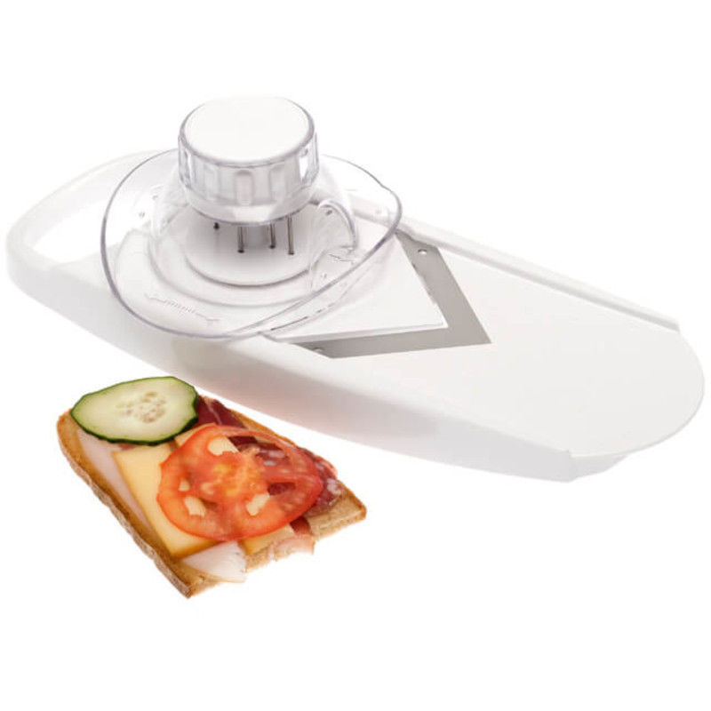 Rezač mandolina je nezamjenjivo pomagalo u svakoj kuhinji jer je njegova upotreba svestrana, a nož dovoljno oštar i za rezanje suhomesnatih proizvoda. Upotrijebite ga za brzu pripremu salata i narezaka. Salamu, sir, luk te čak i neke vrste kruha u nekoliko poteza narežete na željenu debljinu. Narezak će biti spremljen još prije nego će gosti sjesti za stol.