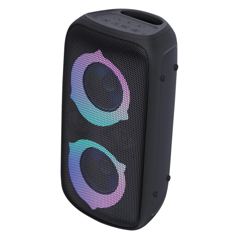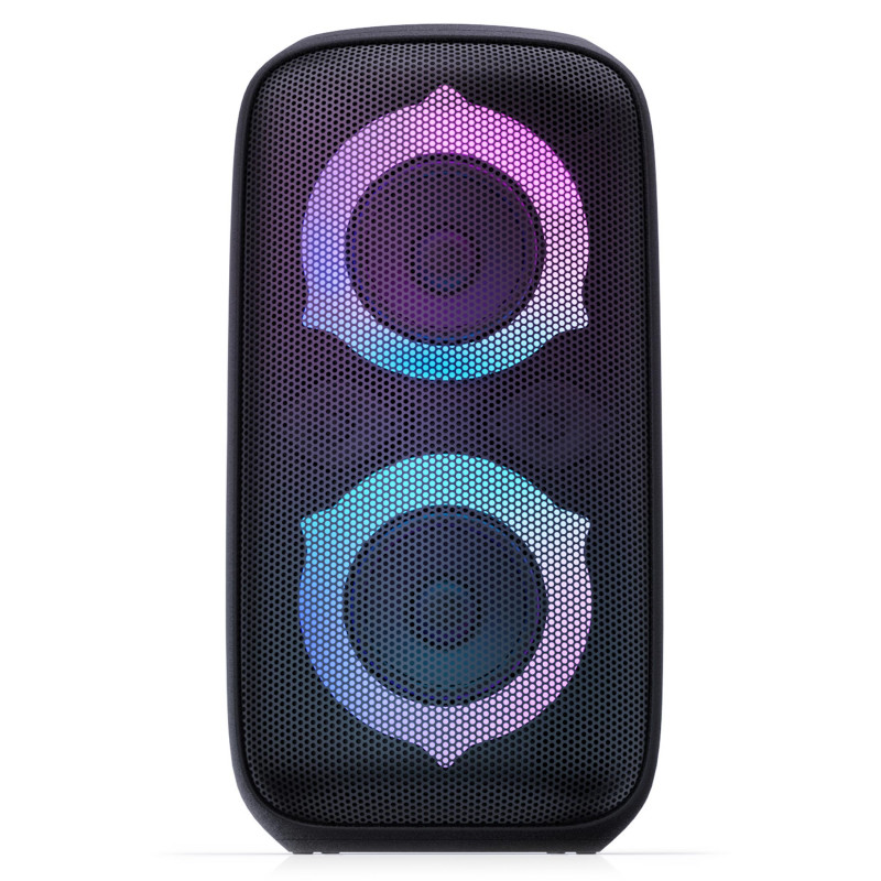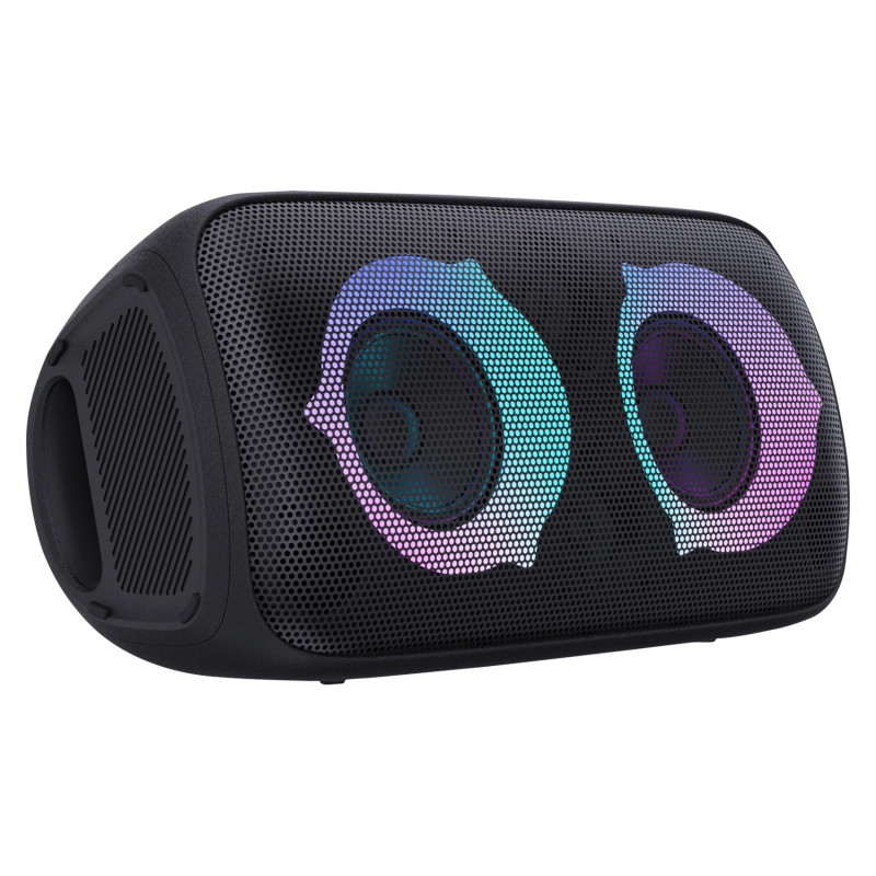 SSS 3500 je vodootporni zvučnik s dinamičnim ogromnim surround zvukom. U omiljenoj glazbi s pametnog telefona ili tableta možete uživati putem Bluetooth 5.0 bežičnog pristupa s razmakom veze do 15 m. Za snažan i jasan zvuk pobrinut će se četiri zvučnika maksimalne snage 80W. Zvučnik je opremljen TWS tehnologijom koja omogućuje spajanje dva zvučnika zajedno i vodootporan je s IPX4 zaštitom. Ne bojte se slušati glazbu u nepovoljnim vremenskim uvjetima ili pored bazena. Možete slušati glazbu do 18 sati (50% glasnoće) s velikom ugrađenom punjivom baterijom od 9 000 mAh.  ZNAČAJKAMA Vodootporni zvučnik s IPX4 zaštitnimnačinima treperenja svjetla s mogućnošću isključivanja svjetlaTWS funkcija (true wireless stereo)BASS boost tipkaPowerbank funkcija ZVUK: Maksimalna snaga zvučnika 80W4 zvučnika (2 basa i srednje klase, 2 tviteraša)Digitalni procesor zvuka DSPfrekvencijski odziv: 70Hz – 20KHzUkupno harmonijsko izobličenje: ≤1% ULAZA: Bluetooth Audio 5.0Udaljenost veze do 15mAudio Aux Ulaz (3,5-milimetarski stereo priključak)USB reprodukcija (MP3)TF utor za karticu (MP3)Ulaz mikrofona 6,3 mm DRUGI: Ugrađena punjiva baterija: 9 000mAh Li-IonVrijeme reprodukcije do 18 sati (50% volumena)Pribor: USB kabel za punjenje, 3,5 mm Aux kabel, Korisnička ručnadimenzija: 397 x 205 x 180 mmTežina: 3 900g