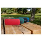 SSS 1110 NYX BLACK    IPX7 vodootporni zvučnik Vrhunski poklopac zvučnika od tkanine TWS (True Wireless Stereo) funkcija Status LED FM radio ZVUK: Maksimalna snaga zvučnika 10 W (impedancija: 4 Ω) 2 zvučnika + 1 pasivni emiter Frekvencijski odziv: 80 Hz – 16 kHz Ukupna harmonijska izobličenja: ≤ 1% ULAZI: Bluetooth Audio 5.0 Udaljenost veze do 30 m Ulazna TF kartica OSTALO: Silikonska traka za jednostavno rukovanje Handsfree funkcija Ugrađena punjiva baterija: 2.000 mAh Li-Ion Vrijeme reprodukcije do 6 sati Punjenje s mikro USB-a  Vrijeme punjenja max. 3 sata Pribor: USB kabel za punjenje, korisnički priručnik Dimenzije: 200 x 77 x 47 mm Težina: 360 g