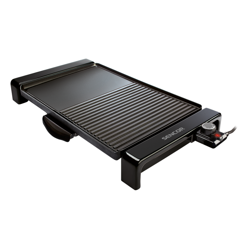 Idealan za roštiljanje tijekom cijele godine u zatvorenom prostoru i u vrtuLagan i prijenosanU skladu s uvjetima za zdravo pečenje (mogućnost pečenja bez dodavanja ulja)Kombinacija 2 različite površine za pečenje:• ravna (za pečenje povrća, jaja, slanine, tosta, krumpira, palačinki, itd.)• rebrasta (za pečenje odrezaka, ribe, dimljenih namirnica, itd.)Velika površina za pečenje (47 x 31 cm)Neprijanjajuća površina za pečenjeLagano se čisti jednostavnim brisanjem papirnatim salvetama ili vlažnom krpomUklonjivi pladanj za kapanje ulja (kapaciteta 350 ml)Regulacija temperatureAutomatska regulacija temperature sa svjetlosnim indikatorom (100 – 220 °C)Funkcija održavanja topline (60 °C)Toplinski izolirane ručke s obje strane za lako prenošenjeNožice protiv klizanjaLako skladištenje (naponski kabel s termostatom se može skinuti)Zaštita od pregrijavanja (toplinski osigurač)Ulazna snaga 2300 WDuljina naponskog kabela: 1.0 mDimenzije bez termostata (širina x duljina x visina): 596 x 344 x 74 mmDimenzije s termostatom (širina x duljina x visina): 654 x 344 x 83 mmTežina: 3.1 kgNapon i frekvencija: 220-240 V, 50 Hz