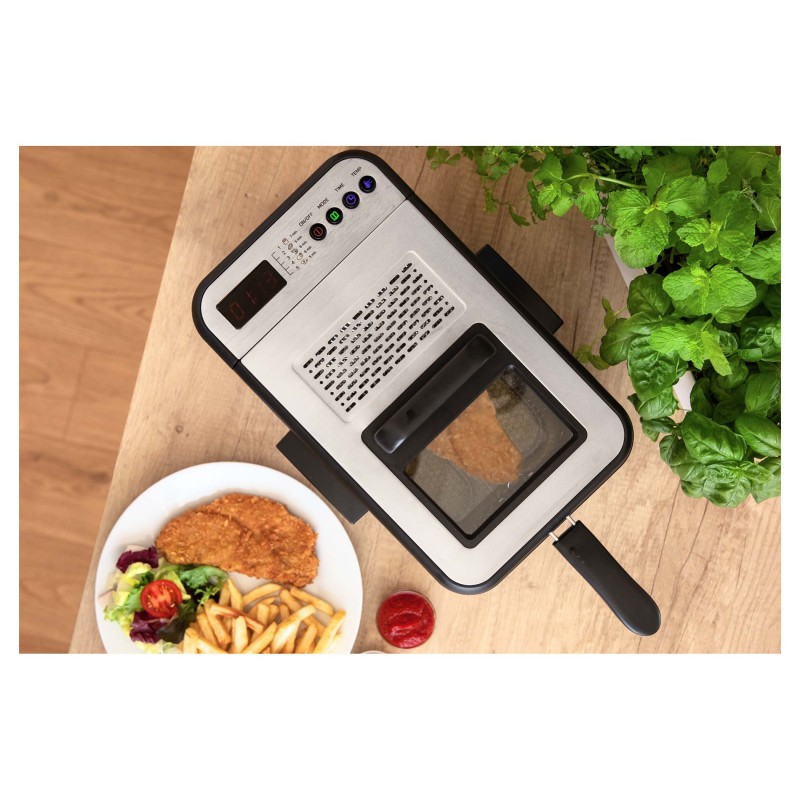 JA SAM SENCOR FRITEZA SFR 8200SS S PET UNAPRIJED POSTAVLJENIH PROGRAMA Domaći krumpirići bolji od brze hrane? Meni to nije problem. Ja sam Sencor friteza SFR 8200SS, ili ako želite “fritezu”. Pobrinut ću se za tebe u trenucima kada se osjećaš kao nešto hrskavo i prženo. Opremljen sam s pet unaprijed postavljenih programa za klasično prženje,zahvaljujući kojima možete lako pripremiti različite vrste hrane bez postavljanja vremena i temperature. ČISTIM JEDNOSTAVNO I BRZO UZ EASY TO CLEAN Kao lonac za prženje, sastojim se od kvalitetnog tijela od nehrđajućeg čelika i neprijanjajuće unutarnje posude za prženje, zbogčega je čišćenje komad torte sa mnom. Zahvaljujući funkciji Easy to Clean, također možete ukloniti poklopac od nehrđajućeg čelika nakon svakog prženja, koji se može bolje očistiti. Osim toga, možete oprati i unutarnju posudu za prženje uperilici posuđa, tako da ću odmah biti spreman za sljedeće prženje. SIGURNOST NA PRVOM MJESTU ZAHVALJUJUĆI OSIGURAČU ZA PREGRIJAVANJE Za sve slučajeve, osiguran sam od pregrijavanja i u trenutku kada me prestanete gledati neko vrijeme i temperatura raste, isključujem se. Onda sve što trebate učiniti je isključiti me i pustiti da se ohladi. Iako sam u mogućnosti da bi vaš dom sigurno, nikada me uključiti bez punjenja uljem, a također me ne ostavljaju na bez nadzora. DIGITALNI ZASLON KOJI VAM NEĆE DATI PRILIKU DA POGRIJEŠITE Čak i ako priprema hrane nije vaša omiljena aktivnost, jednostavnim korištenjem možete sa mnom pržiti sve što želite. Volite li kolutove od luka, prženo meso ili trake? Nema frke. Zahvaljujući LED zaslonu možete jasnije kontrolirati cijeli postupak prženja. Svjetlo vam omogućuje da znate kada ću biti spreman za prženje u stanju pripravnosti. POMFRIT U ROKU OD 7 MINUTA ZAHVALJUJUĆI 2.200 W Nitko ne voli duga čekanja. S 2200 vata snage, ne morate brinuti o čekanju duže nego što je potrebno za vaše omiljene krumpiriće. Mogu ih spržiti za samo 7 minuta,lijepo hrskave, kako vam se sviđaju. Nema više brze hrane, savršeni krumpirići sa mnom možete učiniti u tren oka. MOJE GLAVNE PREDNOSTI Poklopac s vizirom za potpunu kontrolu pripreme hrane Podesivi termostat od 130 °C do 190 °C Poklopac od nehrđajućeg čelika koji se može ukloniti radi lakšeg čišćenja FUNKCIJE I ZNAČAJKE Neprijanjajuća površina unutarnjeg spremnika Tijelo od nehrđajućeg čelika Izmjenjiva unutarnja posuda za prženje pogodna za pranje u perilici posuđaUgrađena ručka za jednostavno otvaranje Izmjenjiva ručka košare za prženje za jednostavno skladištenje i čišćenje Kromirane čelične košare za prženje za dugi servis Hladna površinska ručka za jednostavan rad Sigurnosni osigurač protiv pregrijavanja Izmjenjivo toplinsko tijelo za jednostavno čišćenje Ručke za jednostavno rukovanjeAluminijski filtar za masnoću Pametna ručka za kapanje ulja nakon prženja Timer Pametno skladištenje kabela za napajanje Programi 1. Pomfrit 2. Meso 3. Škampi 4. Piletina 5. Gljive PRIBOR Poklopac s vizirom Košara za prženje kromirani čelik Frying spremnik od nehrđajućeg čelika Metalni filtar LED digitalni zaslon Poklopac lima Ventilacijski otvori TEHNIČKI OPIS Duljina kabela: 1 m Dimenzije: (H × W × D) 210 × 350 × 220 mmTežina: 1,9 kg Volumen: 3,2 l / 1,4 kg pomfrit Snaga: 2.200 W