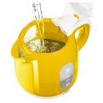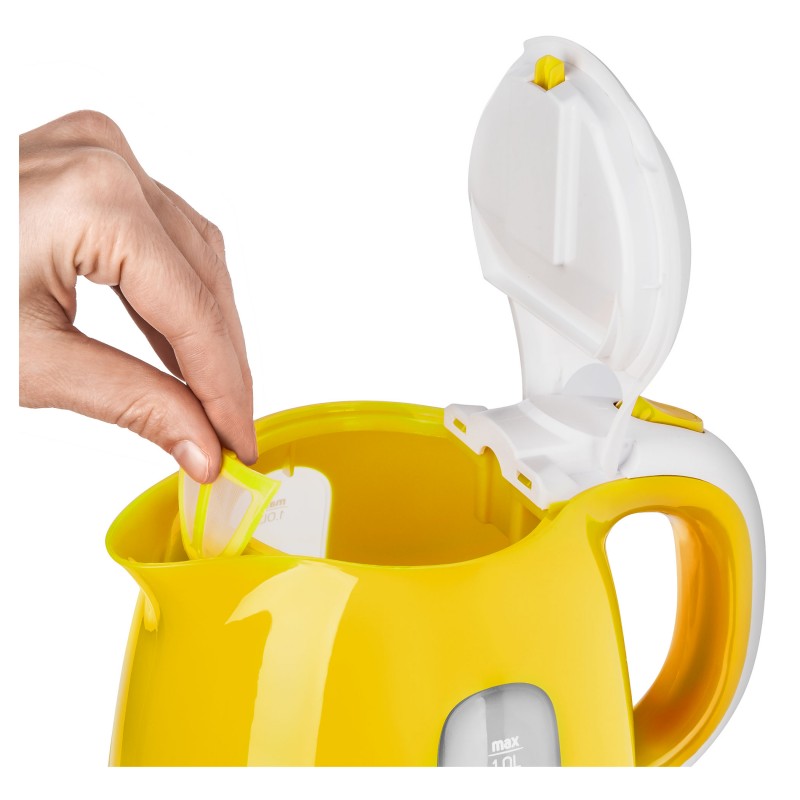Zapremnina 1 lDvostrana oznaka razine vodeErgonomski oblikovana ručka Uklonjivi i perivi filtar za prljavštinu i kamenacGrijaća baza od nehrđajućeg čelika s prekrivenom grijaćom spiralomSigurnosna brava za poklopac za maksimalnu sigurnost Dvostruki sigurnosni sustav: Zaštita od pregrijavanja kada se uređaj uključi bez vode, automatsko isključivanje kada se dosegne vrelišteSvjetlosni pokazatelj rada Središnji priključak od 360°Spremište kabela za napajanje u postolju Ulazna snaga: 900 – 1 100 WNapon i frekvencija: 220-240 V, 50 Hz