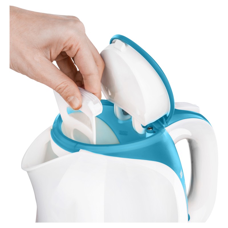 Zapremina 1.5 lOznaka razine vode na obje straneSpremište za kabel za napajanje u bazi uređajaSigurnosno zaključavanje poklopcaFiltar za uklanjanje nečistoća i naslaga, odvojiv i perivGrijač je skriven ispod grijaće baze od nehrđajućeg čelikaTrostruka zaštita:Zaštita od pregrijavanje kad nema vode kod uključenja uređajaAutomatsko isključivanje kod podizanja s bazeAutomatsko isključivanje kad voda proključaSredišnji priključak od 360°On/Off prekidač za uključivanje/isključivanje na ručkiSvjetlosni indikator upaljenosti uređajaErgonomski oblikovana ručkaUlazna snaga 2000 WSunlight kontroler