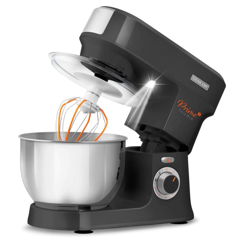PROCESOR HRANE SENCOR   VIŠENAMJENSKI MIKSER ZA HRANU  Snažan motor od 1000 W za savršene rezultate Velika posuda od 4,5 l od nehrđajućeg čelika za sve vrste tijesta (0,8 kg teškog tijesta, 2,2 l laganog tijesta) 6 postavki brzine + funkcija PULS + 2 programa NutriSmart za sve zadatke Jedinstvena LED svjetla za laku kontrolu nad konzistencijom tijesta Mikser 4 napredna nastavka za miješenje i mućenje  Poseban FLEXI nastavak za tučenje i FLEXI mutilica za lagana tijesta Jedinstveni magnetski poklopci daju veću praktičnost  Miješalica za hranu  Staklenka od 1,5 l  Oštrice obložene titanijem Mlinac za meso grubo i fino mljevenje s nastavcima za punjenje kobasica  3 alata za izradu tjestenine/rezanaca  Nastavak za kekse