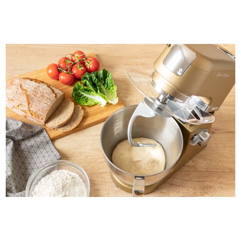 PROCESOR HRANE SENCOR   Izuzetno snažan motor od 1000 W sa 6 godina jamstva Robusno tijelo od punog metala s metalnim zupčanicima Dizajn s 3 čvorišta Sencor Smart Power & Energy – za optimalnu brzinu Promjenjiva kontrola brzine s glatkim startom i 8 stupnjeva brzine Pulsna funkcija LED svjetlo posude za miješanje Posuda od nehrđajućeg čelika od 4,5 litre s mjernom vagom Prozirni poklopac posude s cijevi za punjenje za jednostavno dodavanje sastojaka tijekom miješanja Plastični poklopac za odlaganje posude od nehrđajućeg čelika   SUSTAV PLANETARNOG MJEŠENJA, MJEŠENJA I BIČENJA – osigurava da se sav sadržaj u posudi potpuno izmiješa – priključci se istovremeno rotiraju oko svoje osi kao i oko osi mjenjača – omogućuje obradu 100% sadržaja posude, jamči savršeno miješanje sastojaka   Sustav montaže bajonetnog priključka omogućuje brzu montažu i zamjenu Odvojiva posuda i pribor za jednostavno pranje čak i u perilici posuđa Sigurnost za zaključavanje u gornjem položaju nagibne ruke Stakleni vrč od 1,5 litara Mlinac za meso za grubo i fino mljevenje 3 NASTAVKA ZA MJEŠANJE TIJESTA – oštrica za mijesenje, mješalica u obliku slova A, metlica za mućenje u obliku balona POSEBNA FLEXI MJESILICA ZA FINO TIJESTO 5 izmjenjivih nastavaka za savršene rezultate   – valovito (sljemensko) rezanje – Tanko rezanje – Grubo usitnjavanje/ ribanje – Fino usitnjavanje / ribanje – Rendaka za tvrdi sir i orahe   Punjač za kobasice u 2 promjera Aparat za kolačiće Umutiti do 8 bjelanjaka