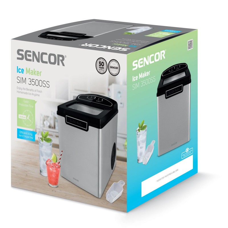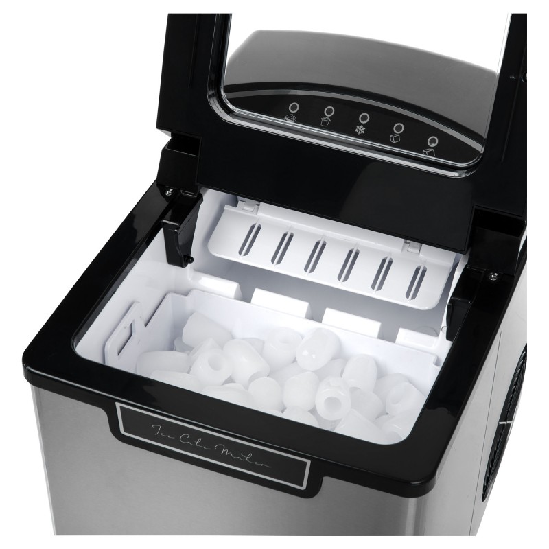 Samo dodajte vodu, pritisnite gumb i uživajte u kockicama leda za samo 9 minutaSavršeno za zabave – čini do 12 kg leda dnevnoLED ploča sa svjetlosnim pokazivačimapogodno za vaše RV, brodicu ili malu kuhinju, ovaj aparat za led kompaktan, prenosiv i radi bilo gdje gdje postoji otvor, postojidovoljno velika za hlađenje hladnjaka i dovoljno mala za osvježavanje pića. Ledene kockice u obliku metalaidealne su za punjenje kanti za led.Izrađuje 9 komada leda po ciklusuPraktična ledena čašica2 veličine ledaJednostavna upotreba; rad jednim gumbom Tihi rad pruža Vam praktičnost komercijalnog alata za led bez buke Značajka automatskog zaustavljanja osigurava zaustavljanje proizvodnje leda kada je posuda puna ili je spremnik vode prazanVolumen spremnika vode: 1,9 lRashladno sredstvo: R600aSnaga: 105 WDimenzije: 345 × 245 × 320 mmTežina: 9,5 kgDodatne informacijeMale kockice leda:Težina: 4 gDimenzije: 16 × 30 mmVelike kocke leda: Težina: 7 gDimenzije: 20 × 30 mm