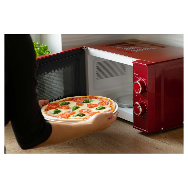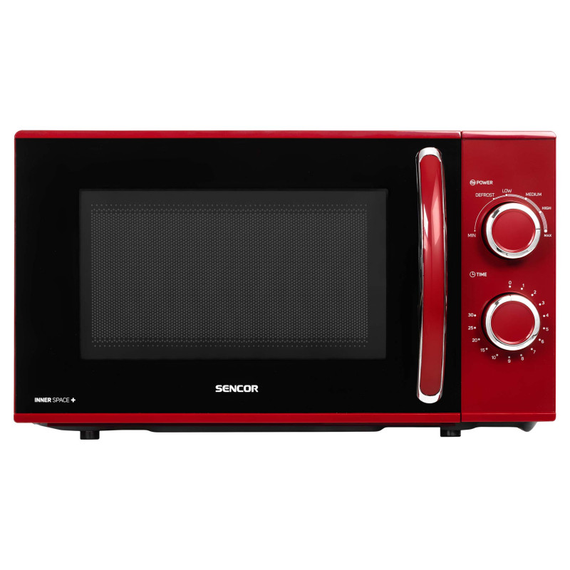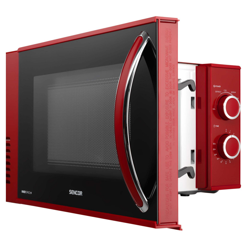 Predstavljamo mikrovalnu pećnicu SMW 1517RD zapremine 17 l. Imam veliku mikrovalnu snagu od 700 vata i pet načina rada. Također nudim praktičan rad s dva okretna gumba. S njima možete brzo postaviti potrebno vrijeme i način grijanja. Dođite i zagrijte hranu sa mnom! Ja sam pouzdana i snažna mikrovalna pećnica tvrtke Sencor u dvije boje. IMAM 5 NAČINA RADA Cijeli proces je jednostavan, praktičan i nadasve brz! Pet načina rada pomaže mi smanjiti ili povećati mikrovalnu snagu za pojedinačne obroke i hranu. Mogu se koristiti za grijanje, kuhanje, ali i za odmrzavanje hrane. Samo okrenite okretni gumb, postavite željeni način rada i vrijeme do 30 minuta. MIN – 18% minimalne snage ODMRZAVANJE – Odmrzavanje 36% NISKA – Mala snaga 58% SREDNJE – Srednja snaga 81% MAX – Visoke performanse 100%   IMAM NISKU RAZINU BUKE OD 58 DB (A) Rado ćete reći “zbogom” svojoj staroj mikrovalnoj pećnici. Radim vrlo tiho i pri maksimalnoj mikrovalnoj snazi dosegnem samo 58 dB (A). Moja operacija nikoga neće ometati, čak i ako radim duže vrijeme i kad završim grijanje, oglasit ću se mekim zvučnim signalom. OSIGURAVAM SIGURAN RAD Sigurna mikrovalna pećnica pouzdana je mikrovalna pećnica! Omogućujem potpunu kontrolu nad cijelom operacijom. Pružam super vidljivost u svakom koraku osvjetljavajući unutrašnjost i ravnomjerno šireći mikrovalne valove, plus super sam stabilan. Uživajte u jednostavnom rukovanju i maksimalnom sigurnom radu mikrovalne pećnice Sencor SMW 1517RD GLAVNE PREDNOSTI Mikrovalno grijanje za jednostavno i brzo podgrijavanje i kuhanjeizdržljivog interijera cakline za jednostavno čišćenjesamo dva upravljačka gumba koji osiguravaju jednostavno ručno upravljanje FUNKCIJE I SVOJSTVA Veliki unutarnji prostor: Kompatibilan s još većim pločama do 25 cmvolumena 17 l5 Razine mikrovalne pećnice kako bi se zadovoljila svaka potrebafunkcija odmrzavanja za brzo i higijensko odmrzavanje30-minutni mjerač vremena dovoljan i za kuhanjemikrovalne pećnice 700 Wzvučni signal za označavanje kraja programskeintegrirane ručke za otvaranje promjera rotirajuće ploče vrata: 245 mmDimenzije (s × h × d): 452 × 262 × 355 mmTežina: 10,5 kg