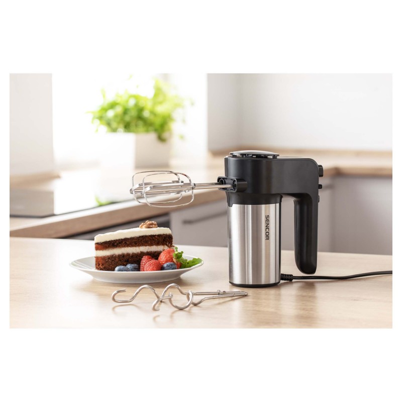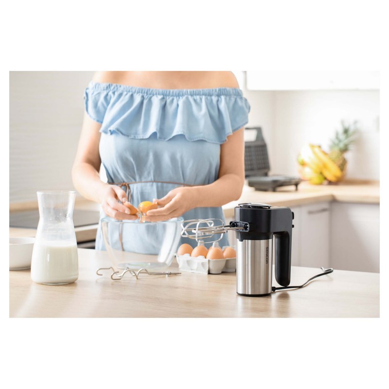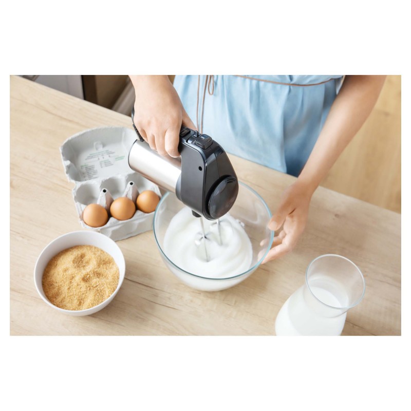 ZA PRIPREMU KORISTITE SET NASTAVAKA ZA MIJEŠANJE OD NEHRĐAJUĆEG ČELIKA Više ne morate koristiti drvene žlice, metlice ili žlice ! U mojoj dodatnoj opremi pronaći ćete dva para nastavka za mućenje od nehrđajućeg čelika, a s ergonomskom ručkom osiguravam ugodno rukovanje u svim smjerovima. MOJA PONUDA DODATNE OPREME: 2x metlice od nehrđajućeg čelika – oni su najprikladniji za šlag, vrhnje, pire krumpir, namaze, bjelanjke i žumanjke itd. 2x kuke za gnječenje od nehrđajućeg čelika – savršeno će vam olakšati rad s obradom gustog tijesta za kolače, kruh, kiflice, itd. Nudim izvrsne performanse i dobru konstrukciju! Za njegovu uporabu efikasan rad motora koji je lagan, miran i ima snagu od 400 vata . Mogu ga bez problema vrtjeti pri velikim brzinama u 6 brzina. A ako vam to nije dovoljno, možete koristiti TURBO način za još veće okrete u djeliću sekunde. MOJE GLAVNE SNAGE Potrošnja energije 400 W Moćan, tih i lagan motor s dugim vijekom trajanja Dodaci sadrže set od 4 nastavka za bičevanje od nehrđajućeg čelika FUNKCIJE I ZNAČAJKE Potrošnja energije 400 WSnažan, tih i svjetlo motor sa životnim dugo uslugaPribor uključuju set od 4 nehrđajućeg čelika priloga mućenje6 stupnjeva prijenosa za sve vrste recepatapuls turbo dostiže maksimalnu snagu / brzinu gotovo odmah 2 VRSTE DODATAKA: 2 metlice od nehrđajućeg čelika za šlag, vrhnje, pire od krumpira, namaze, bjelanjke i žumanjke 2 kuke za gnječenje tijesta od nehrđajućeg čelika Gumb za udobno otpuštanje i uklanjanje dodatakaTihi radMinimalistički dizajn odgovara svima.Jednostavno rukovanje zahvaljujući ergonomskoj ručkiTermička zaštita od pregrijavanja PRIBOR Tijelo za ručnoudaranje 2x metliceod nehrđajućeg čelika 2x kuke za miješenje od nehrđajućeg čelikaOpskrbni kabel TEHNIČKI OPIS Napon: 220-240 VFrekvencija: 50 HzPotrošnja energije: 400 WDužina kabela za napajanje: 1,2 mBuka: 85 dB (A)
