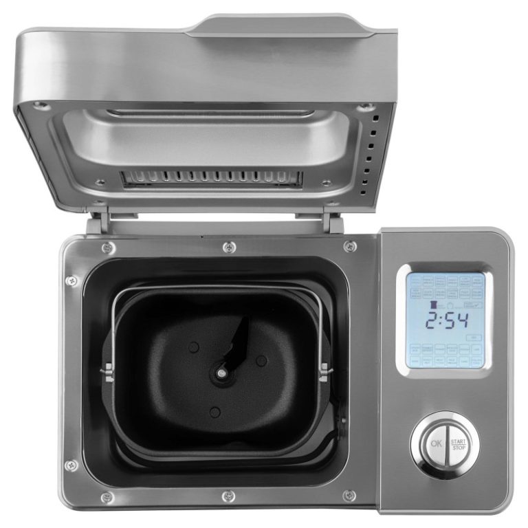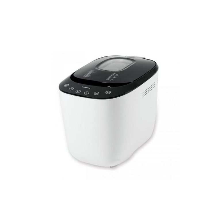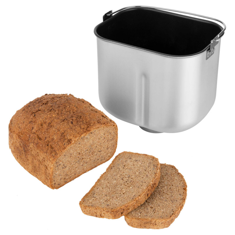 Veliki LCD zaslon i poklopac s velikim prozorom za gledanje Program kuhanja džemova i marmelada 3 postavke razine boje kore (svijetlo / srednje tamno / tamno)   Funkcije i svojstva13-satni prekidač za odgođeni timerza pečenje 10 unaprijed postavljenih programapečenja 1 unaprijed postavljeni program za kuhanje džemova i marmelada1 unaprijed postavljeni program za izradu samo tijesta (npr. za pizzu, bagete, peciva, krafne itd.)Maksimalna zapremina kruha 900 gVeliki POKLOPAC LCD zaslona s prozorom za gledanje 10 minuta memorije u slučaju nestanka struje (aparat za kruh nastavlja pečenje)Držite toplu funkciju 60 minuta nakon završetka pečenjaNeprijanjajuća posuda za pečenje i kuke za miješanje za jednostavno održavanjePosuda za pečenje sigurna za perilicu posuđa Zvučni signal za dodavanje sastojaka koji zahtijevaju kraće vrijeme pečenja Isporučeni pribor: mjerna čaša, žlica i čelična kuka za uklanjanje kuka za gnječenje  Dimenzije i specifikacijeUlaz snage 550WProtuklizne nogeDimenzije (širina x dubina x visina): 403 x 255 x 305 mm
