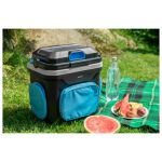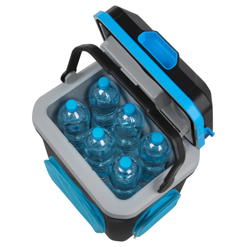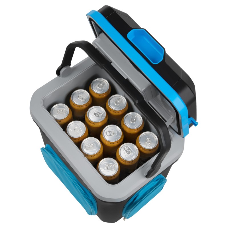 Suvremen dizajn s kapacitetom od 24 litre Mogućnost hlađenja i grijanja 3 praktična džepa sprijeda i dva bočna za držanje putnog priboraZa upotrebu u automobilu i kućanstvu (dvostruko napajanje 12/230 V)Zeleno/crveno LED svjetlo signalizira hlađenje ili grijanjeVelika ručka za lako nošenjePriključak na utičnicu od 12 V (automobilski upaljač) / utičnicu mrežnog napajanja od 230 VNačin rada ECO kada se napaja s 230 V (hlađenje će prestati kada se dostigne 12 °C)Prostor za šest PET boca od 1,5 litara ili pet PET boca od 2 litre, kada je poklopac zatvorenHladi do 16-18 °C ispod okolne temperatureDvostruki zaštitni sustav zatvaranja- poklopac se može otvoriti samo ako je ručka zaklopljena- plastična blokada na gornjem poklopcu, otvoreni poklopac ne može pasti i ozlijediti nečije rukeVentilacijski sustav s dugotrajnim motorom bez četkicaKvalitetna izolacijaUlazna snaga 60 WDužina kabela napajanja za 12 V: 2 mDužina kabela napajanja za 230 V: 1,8 mDimenzije (š × v × d): 398 × 440 × 310 mmMasa: 8 kg