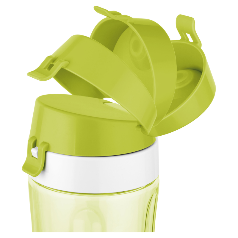 Idealno za pripremu svježih voćnih i fitness napitaka, milkshakeova, miješanih napitaka, koktela, juha, salsa, umaka, dječje hrane Bočica za miješanje može se ukloniti i koristiti kao putna boca Poklopac s izljevom za piće sprječava slučajno izlijevanje LAKO SE ČISTI Boca, poklopac i noževi su sigurni za perilicu posuđa FUNKCIJE I SVOJSTVA Jedna 0,6-litrena i jedna 0,3-litrena uklonjiva boca služe kao boce za piće izrađene od TRITANimpulsnog prekidača otpornog na udarce za učinkovito miješanjevisokokvalitetnih uklonjivih četiri noža od nehrđajućeg čelika s titanskim premazom – Sprječavanje gubitka enzima i vitamina – Smanjenje oksidacije nutri smoothieja Napon i frekvencija od 500 W : 220-240 V, 50/60 Hz
