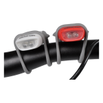 Kompaktni komplet gumiranih svjetiljki za kotačOve prednja i stražnja svjetla za bicikl idealna su u slučaju da trebate mala, praktična i lako uklonjiva svjetla za biciklOba svjetla imaju 2 LED lampe, prednje svjetlo je bijelo, stražnje crvenoOsim toga, oba svjetla imaju funkciju bljeskanjaMaterijal: plastika, silikonZnačajke: FULL / FLASH / OFFNapajanje: 6 VTip baterije: 2 x CR2025 (uključeno)Svjetlosni tok od 5 lmVrijeme gorenja: 8 satiDoseg: 3 mOtpornost: IP 42Težina: 18 gDimenzije: 40 x 25 x 105 mm