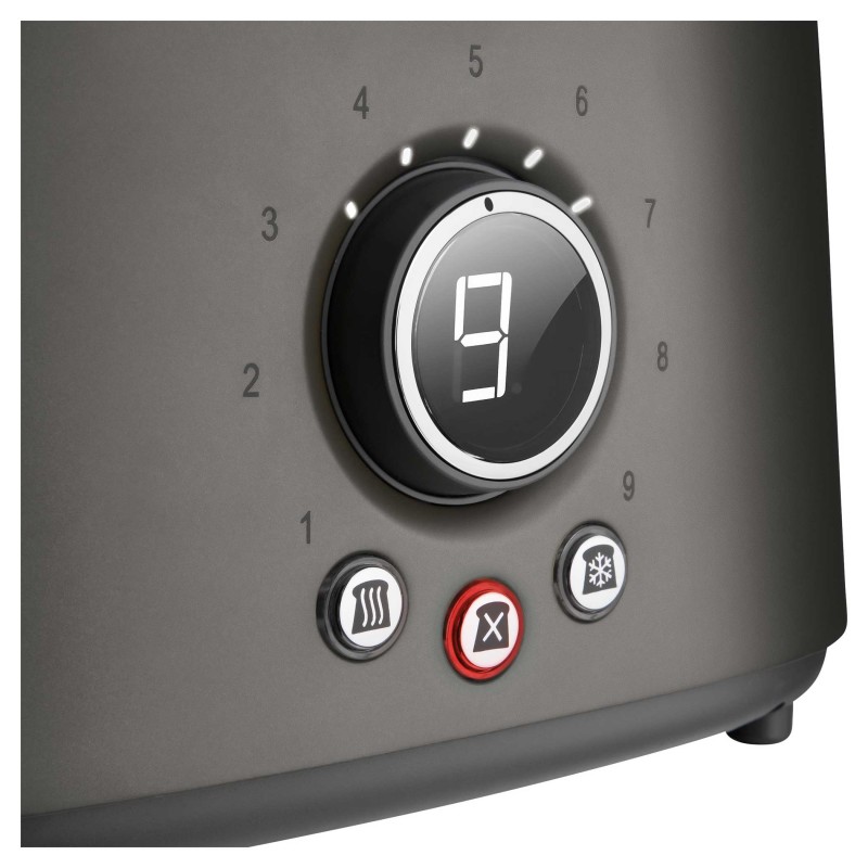 2 utora za pečenje dvije kriške (duljina 135 mm)Premium metalik dizajnStalak za zagrijavanje peciva i pečenja do hrskavostiTri funkcije u jednom: ponovno zagrijavanje (uz svjetlosni indikator) trenutno poništavanje rada prije isteka namještenog vremena pečenja odmrzavanje smrznutih krušnih proizvoda (uz svjetlosni indikator) Prikladan za pripremu debelog i tankog pečenog kruhaElektronički vremenski brojač – 9 razina intenziteta pečenjaAutomatsko izbacivanje i gašenje nakon završetka pečenja/odmrzavanjaFunkcija automatskog centriranja za ravnomjerno pečenje debelog i tankog pečenog kruha