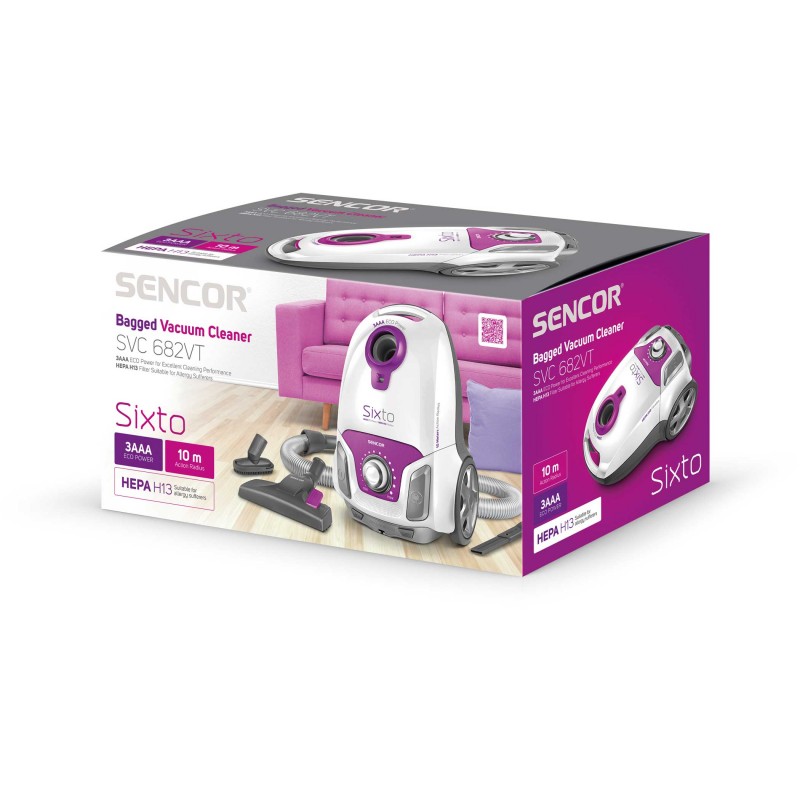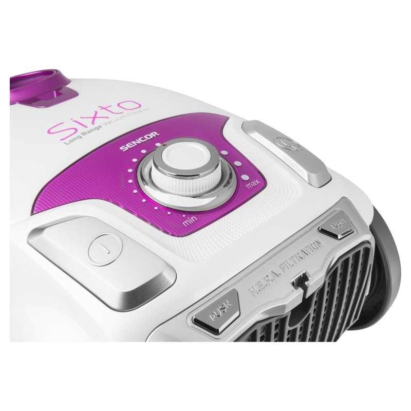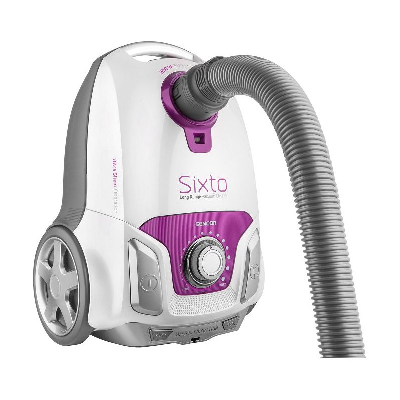 HEPA H13 filter osigurava vrhunsku filtraciju pogodnu za osobe s alergijom 3AAA ECO snaga za izvrsne performanse čišćenja Tehnologija šutnje 75 dB (A) za tiho usisavanje Klasa potrošnje energije: A Učinkovitost čišćenja tepiha: B Učinkovitost čišćenja tvrdog poda: A Klasa remisije prašine: A XXL metalna teleskopska cijev za prilagodljivu ergonomsku radnu visinu Utočni mikrofilter koji se može prati Termostat (toplinski osigurač) Štiti motor od pregrijavanja Mekani kotači za zaštitu poda i tiho kretanje Vodoravno i okomito parkiranje za jednostavno spremanje ili lomove tijekom usisavanja Pokrivanje površine 314 m2 za manje izmjene utičnice Radni polumjer 10 m (duljina kabela 7 m) Automatski kabel za namatanje kabela Elektronska regulacija snage Puni pokazatelj vrećica za prašinu Univerzalna podne mlaznica s proširivom četkom Isporučeni dodaci: Creva mlaznica, mlaznica četkica, mlaznica za presvlake 3 L sintetička vrećica za prašinu za bolju filtraciju i higijensko odlaganje prašine Dimenzije (dužina × širina × visina): 390 × 315 × 215 mm Težina: 4,9 kg 750 W ECO motor