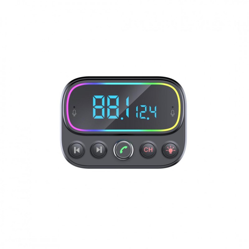 Serioux FM transmitter SRXA-ABFM67 Bluetooth V5.0 Automatsko spajanje Domet do 5 metara Ulazni napon: DC 12/24V Izlaz: Tip-C, USB 2.4A +18W FM frekvencija: 87.5MHz – 108.0MHZ Glazbeni format: MP3/WMA/WAV USB audio (do 32 GB) MicroSD utor (do 32 GB) AUX Ugrađeni dvostruki mikrofon Funkcije: poziv /odbacivanje / handsfree / ponovno pojavljivanje LED pojas sa 9 načina rada u boji Aktivira glasovnog asistenta telefona: Siri / Bixby / Google Assistant