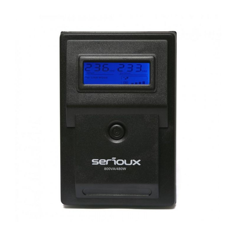 UPS Serioux 800VA Line Interactive 800VA / 480W 2 Schuko porta RJ45 + USB metalno kućište AVR funkcija automatsko ponovno pokretanje funkcija hladnog starta zaštite: prenapon, potpuno pražnjenje, kratki spoj, prekomjerno punjenje baterije: 12V / 9AH uključeni softver vrijeme prijenosa: 2-6 ms crna boja