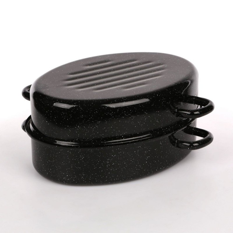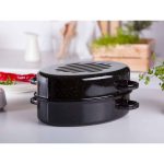 Dimenzije posude za pečenje:promjer: 30 cmvisina: 15 cmkapacitet: 2,8 Litara + 2,8 Litara Pečenje i prženje u emajliranom jelu od pečenja jamči sjajan okus i aromu pripremljenih jela uz održavanje svih hranjivih vrijednosti . Posuda za pečenje idealna je za pečenje, prženje i kuhanje jela . Emajlirani premaz sprječava da se posuđe lijepi, olakšava održavanje posuđa čistim, otporan je na ogrebotine i visoke temperature . Ne sadrži nikal, pa je potpuno siguran za osobe s alergijom . Optimalna debljina čelične konstrukcije osigurava ravnomjernu raspodjelu topline i smanjuje rizik od opeklina . Konveksni oblik poklopca povećava kapacitet posude, a sustav dvostruke ručke omogućuje da se poklopac koristi kao dodatna posuda za posluživanje. · Zahvaljujući prikladnim ručkama , posudu možete sigurno izvaditi iz pećnice . Prilagođena je svim vrstama štednjaka, uključujući indukcijske štednjake .