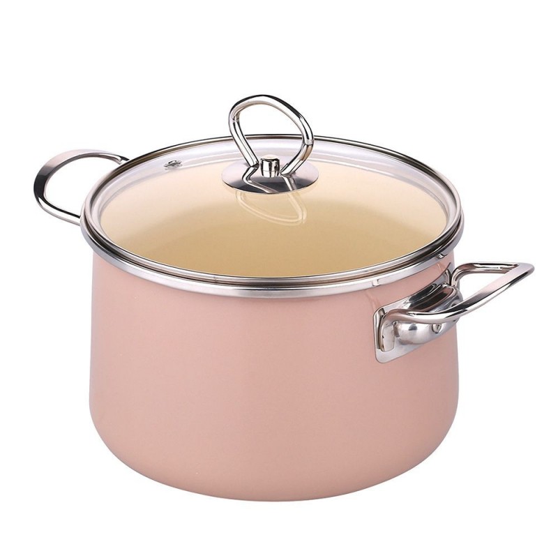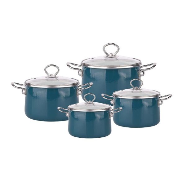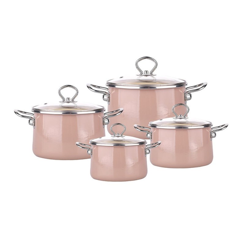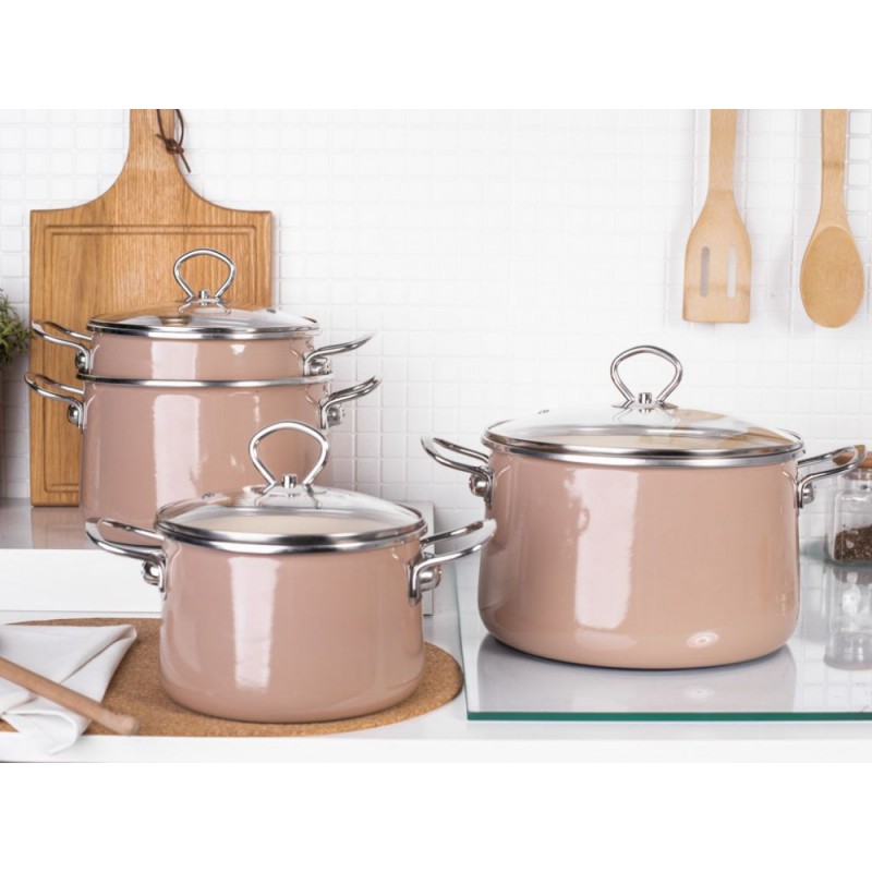 Set lonaca Silesia Rybnik za plin i indukciju Izydor sa staklenim poklopcima, bež boje Emajlirani lonci nježnih boja u kojima kuhate ukusno i zdravo. Set lonaca uključuje: 1 x lonac s poklopcem 16 cm, visina – 11,3 cm, kapacitet – 2,1 l,1 x lonac s poklopcem 18 cm, visina – 12,2 cm, kapacitet – 3,1 l1 x lonac s poklopcem 20 cm , visina – 13,1 cm, kapacitet – 4,1 l1 x lonac s poklopcem 22 cm, visina – 14,6 cm, kapacitet – 5,5 l