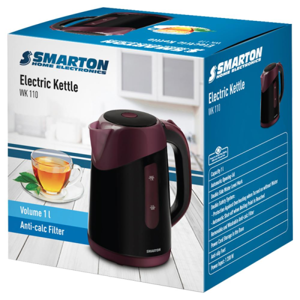 Zapremnina 1,8 lPotrošnja: 1.500 WSredišnji konektor 360°Dvostruka sigurnosna zaštita:Zaštita od pregrijavanja kada je uključen bez vodeAutomatsko isključivanje kada se postigne točka vrenjaPrikladno i za kupce s oštećenim sluhom (svjetlosna indikacija rada)Ručka hladna na dodirPrekidač za uključivanje/isključivanje integriran u ručkuGrijaća baza od nehrđajućeg čelika s prekrivenom grijaćom spiralomSkladištenje mrežnog kabela u postoljuSigurnosno zaključavanje poklopca u zatvorenom položajuTežina bez postolja: 530 gDuljina mrežnog kabela je 70 cm