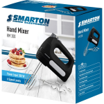 SMARTON HM 300 ručni mikser6 stupnjeva prijenosaTurbo tipka za maksimalnu snaguSet pjenjačeza miješanje Jednostavan za čišćenje uperilici posuđa Toplinski osigurač protiv pregrijavanja.Duljina kabela za napajanje: 1 mUlazna snaga 300 W