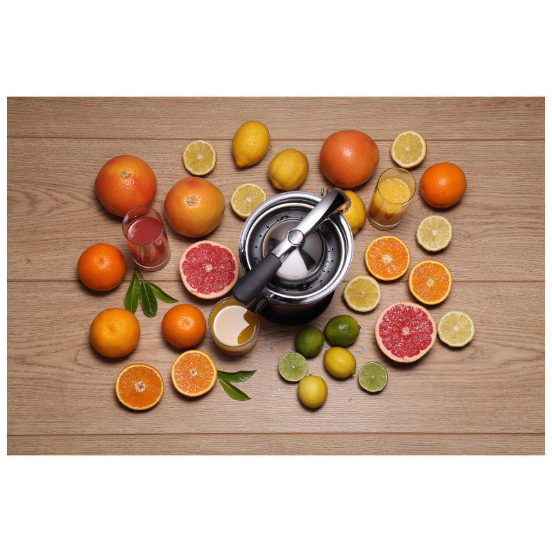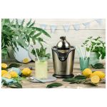 Cjedilo za agrume / citruse snage motora 100 W ima finu mrežicu od nehrđajućeg čelika. Jednostavno prepolovite agrum i pritisnite polovicu s prerezanom stranom na kupolu. Kad pritisnete voće na kupolu, cjedilo se automatski uključuje i kupola se počinje vrtjeti. Cjedilo se automatski isključuje kad smanjite pritisak na kupolu. Kupola za cijeđenje vrti se u pulpu voća, iz njega struže kašu i istiska sok.