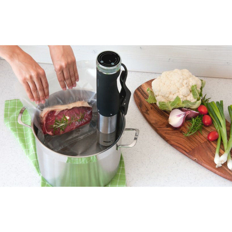 Sous Vide kuhalo funkcionira kao cirkulator topline odnosno vruće vode u loncu. Temperaturu vode održava na precizno odabranom stupnju više sati, zato je hrana kuhana ravnomjerno na rubovima i u sredini. Ne trebate više brinuti da bi se namirnice skuhale previše ili neravnomjerno. U pećnici ili na štednjaku dolazi do većih fluktuacija temperature (čak i do 20°C).