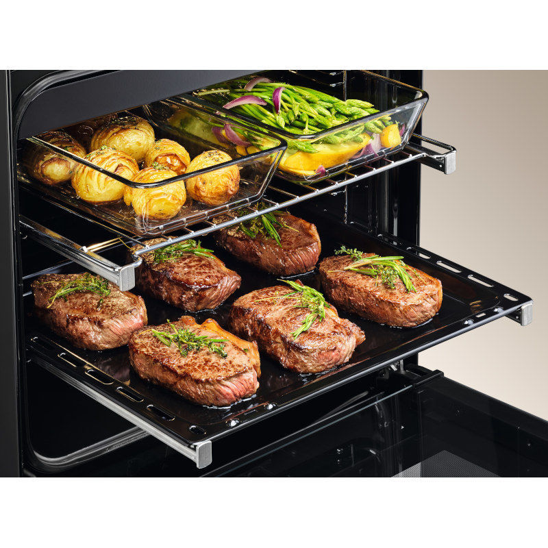 S našim proširivim sklopivim vodilicama više nema posezanja u vruću pećnicu – hrana dolazi k vama. Vodilice omogućuju da se police izvuku do kraja i osiguraju na mjestu, tako da su vam ruke slobodne za pečenje i dodavanje začina.