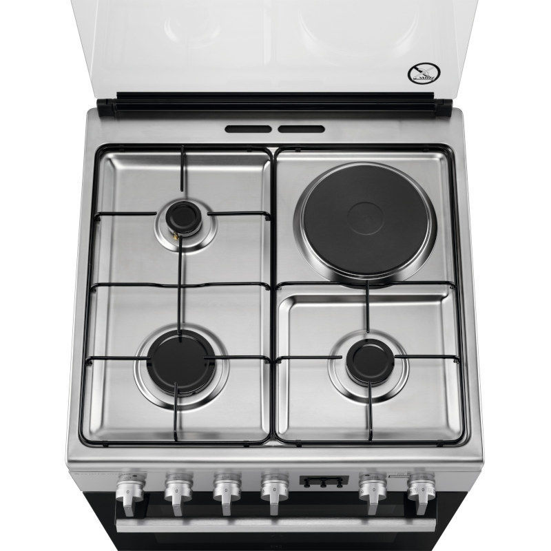 Štednjak s električnom pećnicom i obična električna + plin (3+1) zapremnine: 58 l. Dimenzije uređaja V׊×D (mm): 85,7 x 60 x 60 cm. Energetski razred: A.