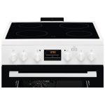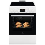 Electrolux LKR664100W 600 SteamBake štednjak staklo keramička 600 mm bijeli. Štednjak s električnom pećnicom i električnom staklo keramička pločom. Snage grijaćih mjesta: Lijevo sprijeda zone kuhanja: električni grijač, 1700W/180mm, Lijevo straga zone kuhanja: električni grijač, 1200W/140mm, Desno sprijeda zone kuhanja: električni grijač, 1200W/140mm