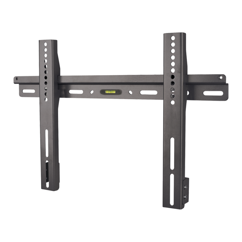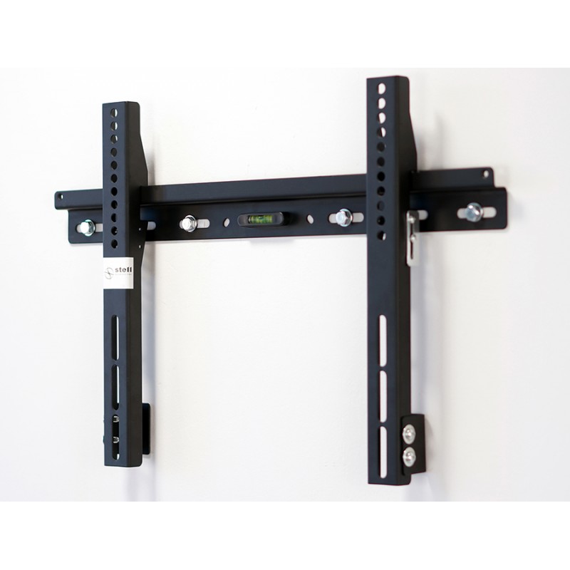 Univerzalni niskoprofilni nosač Za Tv od 25“ do 50″ Udaljenost od zida: 4 cm Maksimalna nosiva masa 45kg Integrirana libela Boja: crna Materijal: nehrđajući čelik