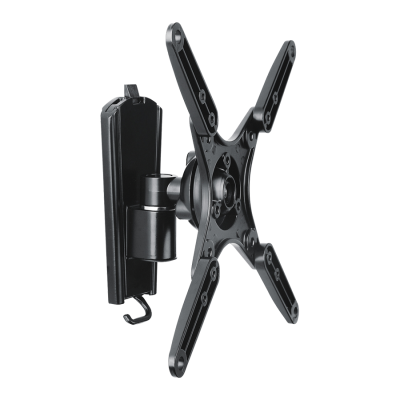 Za TV: 13-40 “/ 33-100 cm 1 zglob, vertikalni i horizontalni nagib i rotacija Nagib: + -15 °, Nagib: + -30 °, + 180 ° rotacija Maksimalna nosiva masa: 20 kg Udaljenost od zida: 9.2 cm Boja: crna Materijal: čelik / aluminij Integrirana libela VESA 75, 100, 200×100, 200×200