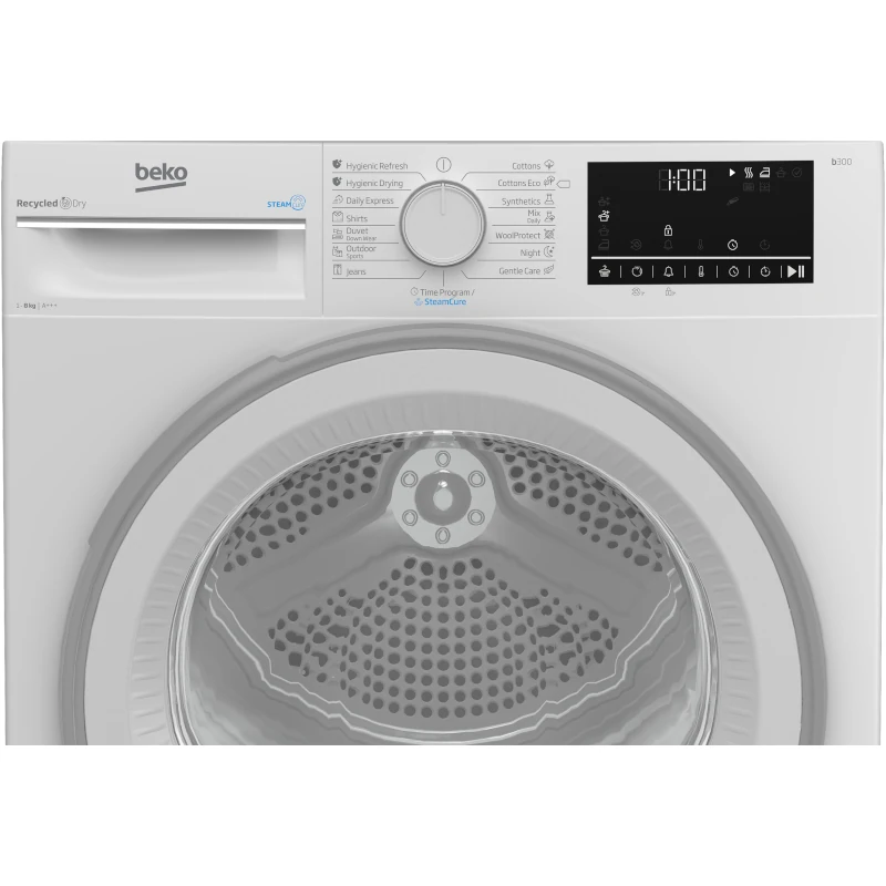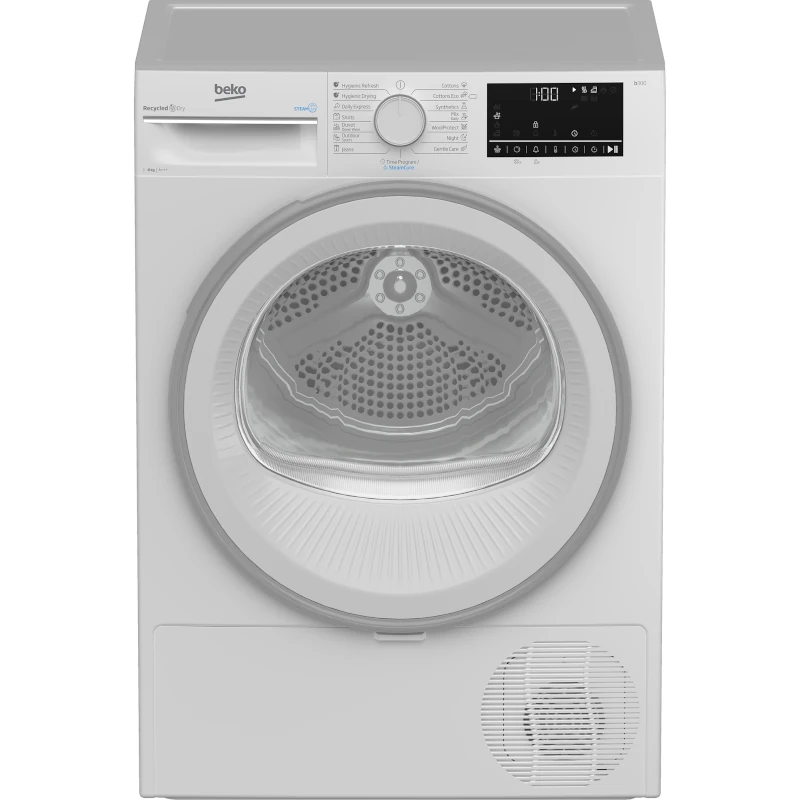 Beko sušilica rublja s toplinskom pumpom kapaciteta: 8 kg i 15 programa rada. Razina buke: 63 dB(A). Dimenzije uređaja (VxŠxD): 84,6 x 59,8 x 60,5 cm. Energetski razred: A++.
