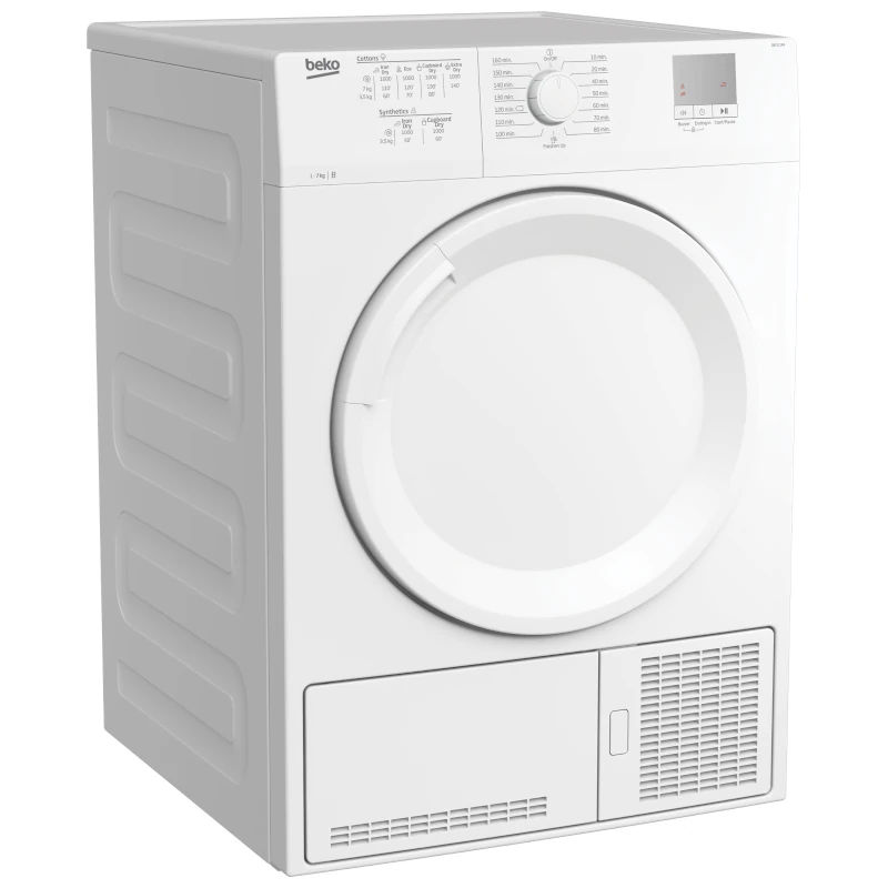 Beko sušilica rublja s kondezatorom, kapaciteta: 7 kg, dimenzija (VxŠxD): 84,6×59,7×56,8 cm. 15 programa. AquaWave® – Djelovanje bubnja nalik valovima za nježniji tretman.