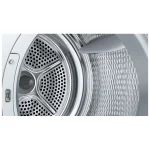 Bosch Serie 8, Sušilica rublja s toplinskom pumpom, 9 kg i Smart Dry, koju pokreće Home Connect. Štedi energiju zahvaljujući energetskoj klasi A+++ i samočistećem kondenzatoru. Štiti vašu odjeću funkcijom Auto Dry. Auto Dry: automatski suši rublje do točne željene razine suhoće. Self Cleaning Condenser: uklanja prašine i niti s kondenzatora i zadržava energetsku učinkovitost A+++. Smart Dry: povezana sušilica i perilica rublja preporučuju pravi program sušenja. Home Connect: kućanski uređaji sad se mogu pametno povezivati kako bi svakodnevni život učinili jednostavnijim. Opcija Half Load: optimizira postavke sušilice (količina i trajanje) kod malih količina rublja.