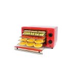 Kućište i pladnjevi su metalni, vrata su od kaljenog stakla.