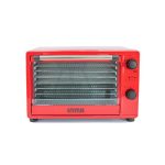 Kućište i pladnjevi su metalni, vrata su od kaljenog stakla.