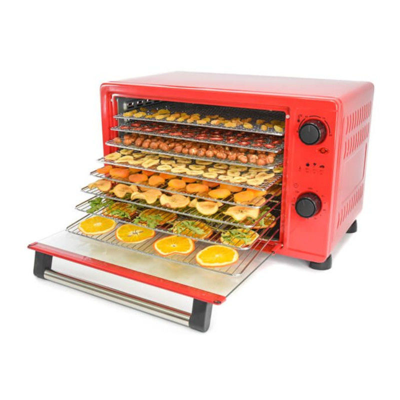Sušilica voća, povrća i začinskog bilja volumena 30 litara je pravi odabir za pripremu zdravog, sušenog voća i domaće vegete. Metalno kućište garantira brzo sušenje s manjom potrošnjom energije. Uključuje 8 pladnjeva s ukupnom površinom 0,74 m2. Nazivna snaga aparata: 650 W, dimenzije: 505 × 360 × 327 mm.