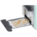 Kompaktni toster, Styline, Zelene boje. Ugrađena rešetka za zagrijavanje koja se može sklopiti. Funkcija podgrijavanja: ponovno zagrijava vaš tost, koji tako postaje hrskaviji i ukusniji. Jednakomjerno pečenje s automatskim centriranjem kruha. High Lift: jednostavno uklanjanje čak i malih kriški kruha. Izbor IndividualRoast: devet razina pečenja za pojedinačno uživanje i različite vrste kruha.
