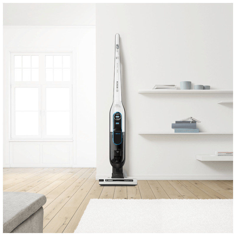 Serie | 6, Akumulatorski usisavač, Athlet ProSilence 28Vmax bijeli. Sustav ProSilence: posebice tiho usisavanje s temeljitim rezultatima čišćenja. SmartSensor Control: Visoka učinkovitost u radu zahvaljujući kontroli senzora s LED indikatorom. RotationClean: brza i jednostavna zamjena filtra – nema potrebe bo pranju filtra. Inovativna mlaznica AllFloor HighPower: Jedna četka za sve vrste podova i savršene rezultate čišćenja. Samostojeći stalak: uvijek dostupno, za brzo korištenje, jednostavno za pospremanje i punjenje.