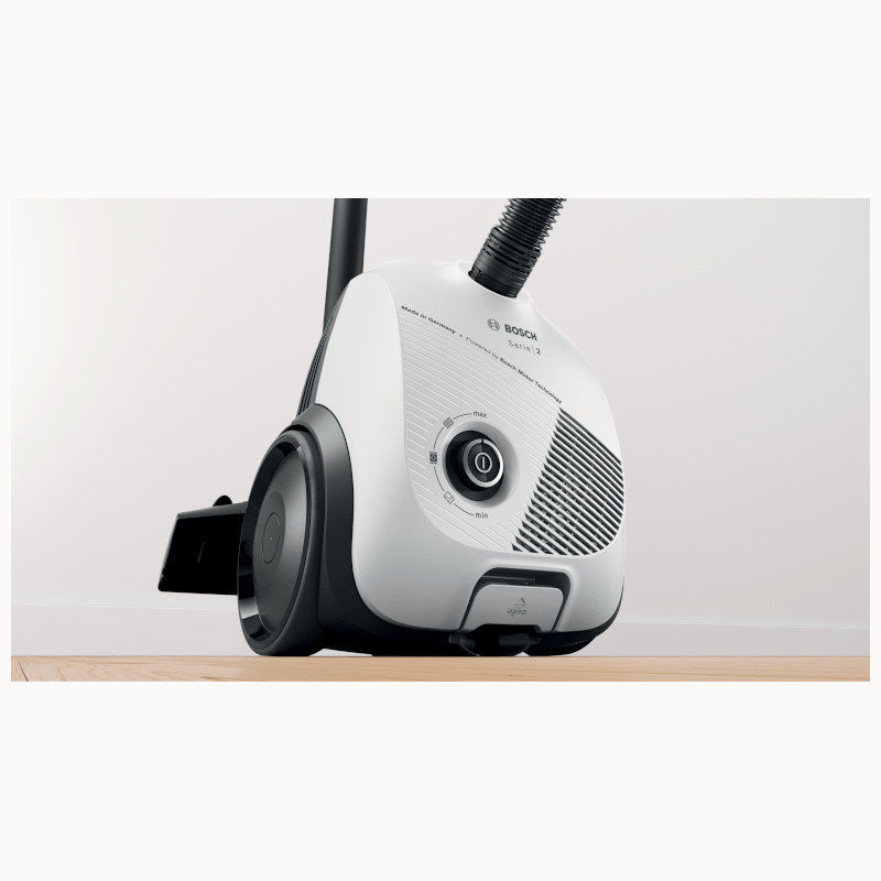Bosch usisavač s vrećicom, Serie | 2, bijela. 10-godišnje jamstvo za motor*: Kontinuirano visoka učinkovitost s tehnologijom Bosch Motor Technology napravljenom u Njemačkoj. Easy Control: optimalna učinkovitost na svim podovima s jednostavnom prilagodbom snage našeg Bosch motora. Sistem s higijenskim filtrom: za čist i filtriran izlazni zrak. Rjeđe mijenjanje vrećice za prašinu i niži trošak zahvaljujući 3,5 litara velikom volumenu vrećice za prašinu. Iznimno kompaktan: prikladan za korištenje zahvaljujući niskoj težini (samo 4.7 kg) i kompaktnom obliku.