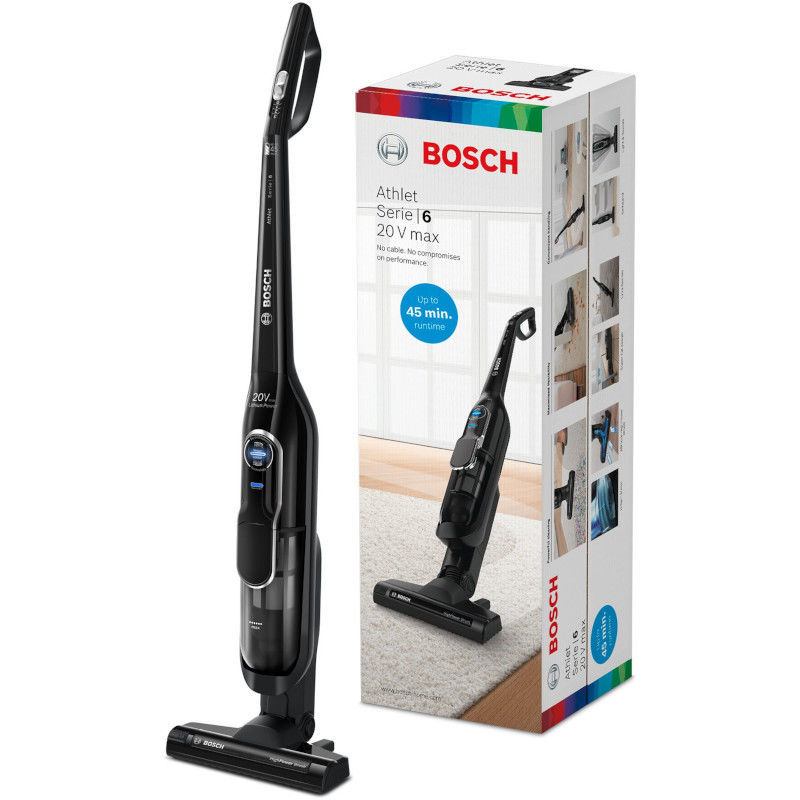 Bosch akumulatorski usisavač, Athlet 20Vmax, crna boja. SmartSensor Control: Visoka učinkovitost u radu zahvaljujući kontroli senzora s LED indikatorom. Inovativna mlaznica AllFloor HighPower: Jedna četka za sve vrste podova i savršene rezultate čišćenja. Samostojeći stalak: uvijek dostupno, za brzo korištenje, jednostavno za pospremanje i punjenje. Savršena udobnost: jednostavan za upotrebu, pospremanje i čišćenje zahvaljujući maloj težini i sistemu Easy Clean System.