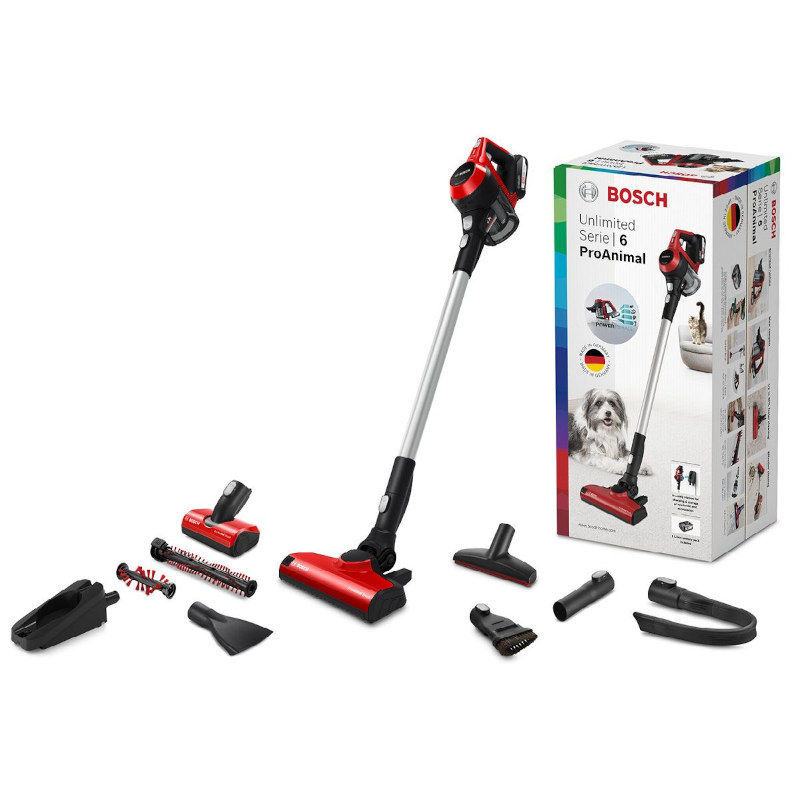 Za ljubitelje životinja: do 30 % brže čišćenje * – i to bez kabla! Novi bežični usisavač Bosch ProAnimal. Najkompaktniji: jednostavno rukovanje i fleksibilno čišćenje zahvaljujući kompaktnom dizajnu i maloj težini. Sustav Power for ALL: baterijski sklop dio je Bosch Home & Garden 18-voltnog bežičnog sustava (zelena proizvodna linija). ProAnimal četka za visoku sposobnost čišćenja na svim vrstama podova s dodatnom okruglom četkom idealnom za životinjsku dlaku. Mala električna četka ProAnimal: dodatna motorizirana mlaznica za uklanjanje životinjskih dlaka i vlakna s tapeciranog namještaja. Proizvedeno u Njemačkoj: standardi visoke kvalitete i temeljito testiranje za trajno zadovoljstvo.