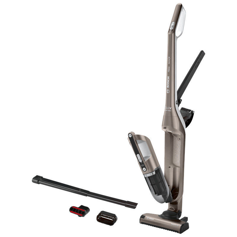 Serie | 4, Akumulatorski usisavač, Flexxo 21.6V, Smeđe boje. Praktično, brzo i temeljito. Ugrađeni nastavci omogućuju još fleksibilnije svakodnevno čišćenje. Čišćenje na svim razinama: uz 2u1 plus nastavak, sva prašina je usisana – od poda do stropa. Praktična funkcionalnost 2u1: ručni i štapni usisavač u jednom uređaju za još veću fleksibilnost. Temeljiti rezultati čišćenja na svim vrstama podova zahvaljujući visokoučinkovitoj tehnologiji bez vrećice i četki za sve vrste podova AllFloor HighPower Brush. Samostojeći stalak: uvijek dostupno, za brzo korištenje, jednostavno za pospremanje i punjenje. Savršena udobnost: jednostavan za upotrebu, pospremanje i čišćenje zahvaljujući maloj težini i sistemu Easy Clean System.