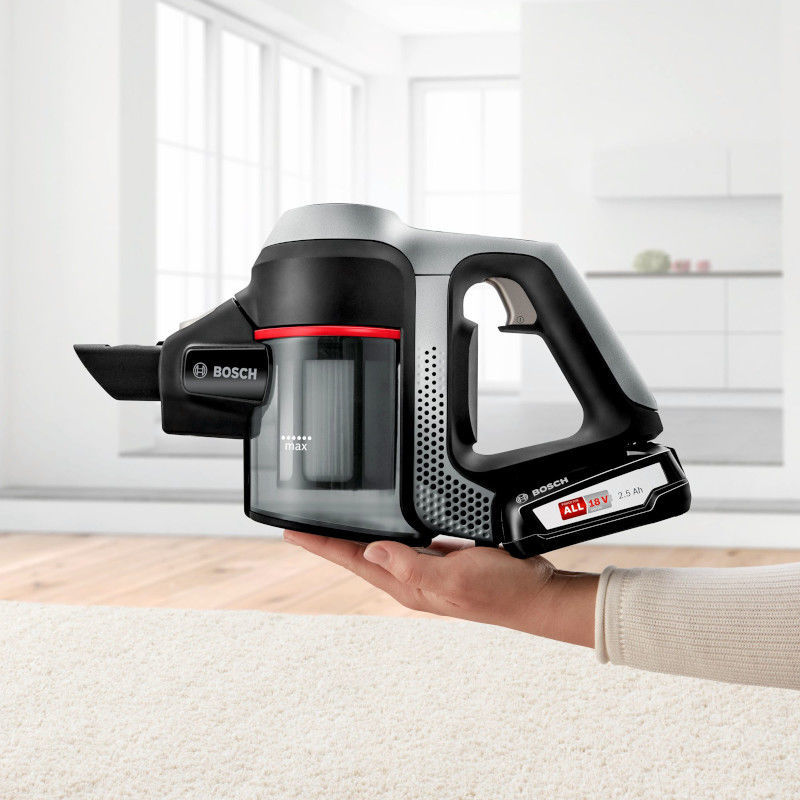 Bosch akumulatorski usisavač, Unlimited, Silver. Najkompaktniji bežični višenamjenski držač u bezvremenskoj boji bijelog aluminija. Najkompaktniji: jednostavno rukovanje i fleksibilno čišćenje zahvaljujući kompaktnom dizajnu i maloj težini. Produženo vrijeme rada: izmjenjivi baterijski sklop omogućava vam da po potrebi produžite vrijeme rada. Sustav Power for ALL: baterijski sklop dio je Bosch Home & Garden 18-voltnog bežičnog sustava (zelena proizvodna linija). Proizvedeno u Njemačkoj: standardi visoke kvalitete i temeljito testiranje za trajno zadovoljstvo. Učinkovitost čišćenja: kombinacija motora bez četki i posebne motorizirane mlaznice za pod.
