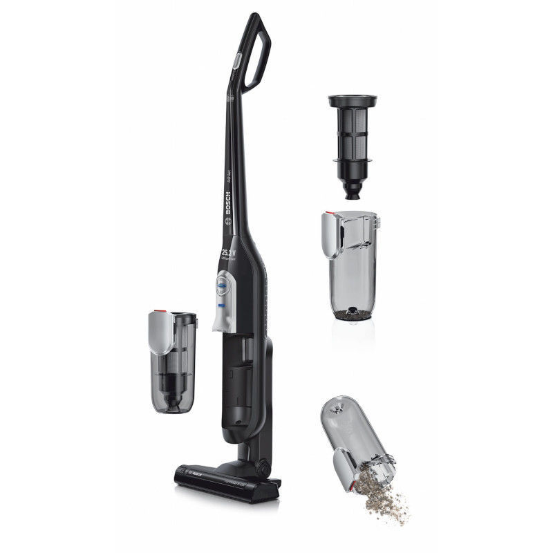 Bosch akumulatorski usisavač, Athlet 25.2V, crna boja. SmartSensor Control: Visoka učinkovitost u radu zahvaljujući kontroli senzora s LED indikatorom. Samostojeći stalak: uvijek dostupno, za brzo korištenje, jednostavno za pospremanje i punjenje. Savršena udobnost: jednostavan za upotrebu, pospremanje i čišćenje zahvaljujući maloj težini i sistemu Easy Clean System. Inovativna mlaznica AllFloor HighPower: Jedna četka za sve vrste podova i savršene rezultate čišćenja.